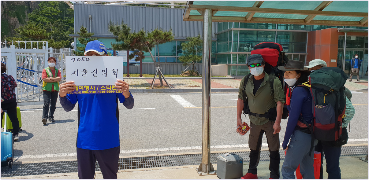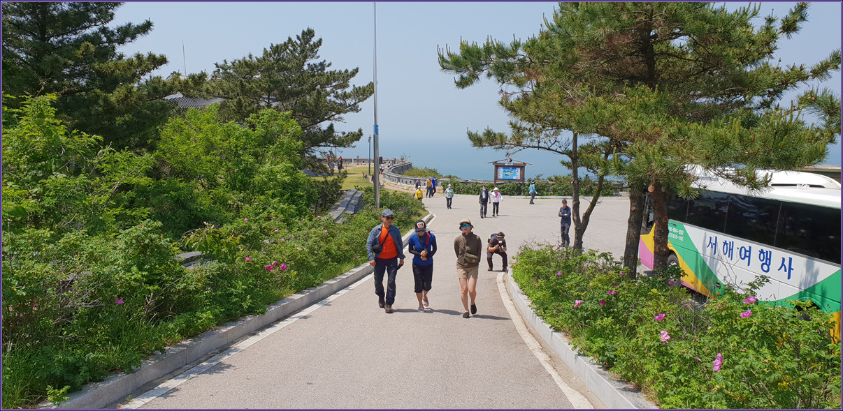 우리 27명은 백령도에 도착해서 무거운 짐을 대형버스에 다 싣고 홀가분한 맘으로 기사님의 위트넘치는 목소리와 함께 백령도 트레킹투어를 시작합니다.